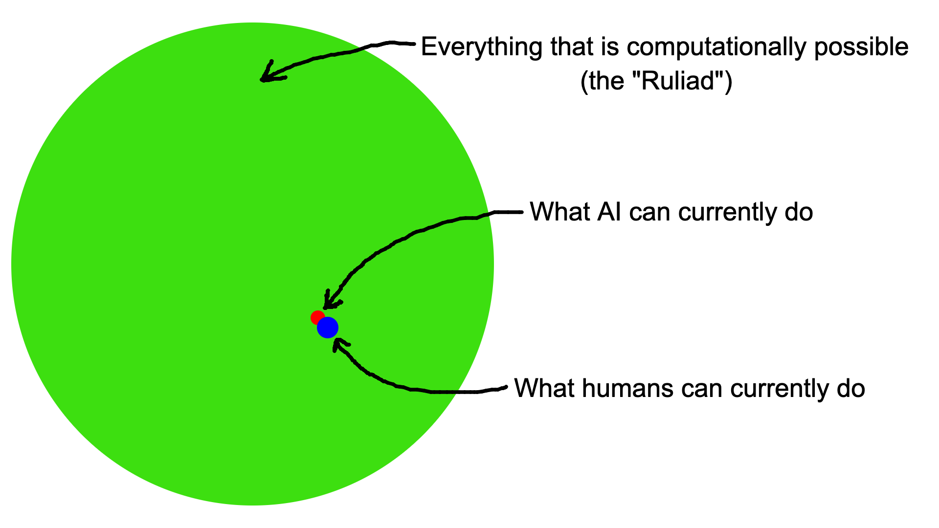 As far as the jobs humans have, those jobs have already been optimized around the parts of the computational universe (the Ruliad) that machines can’t handle.