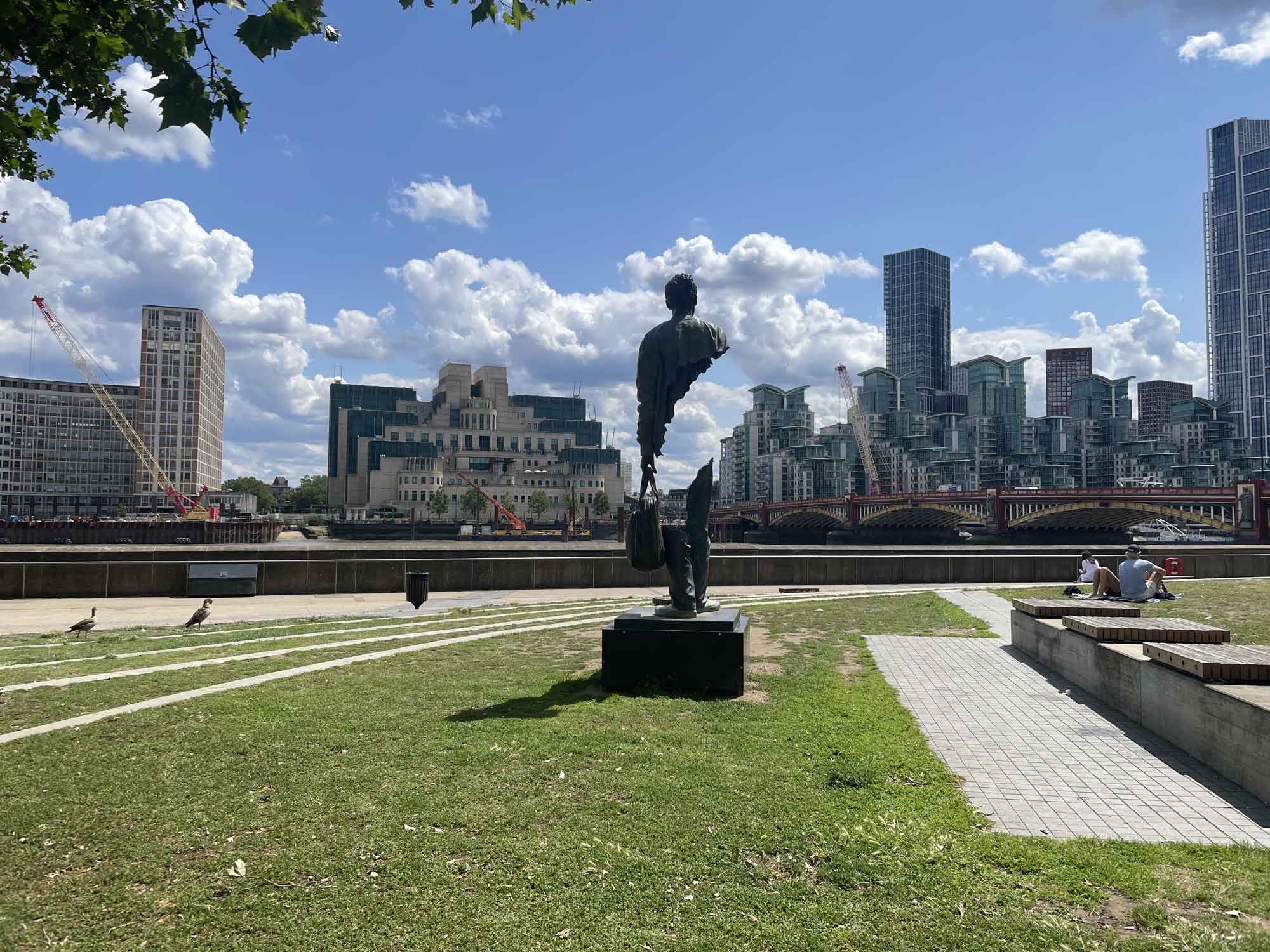 Each statue is missing a piece of their body, symbolizing the lost love of moving to a different culture.